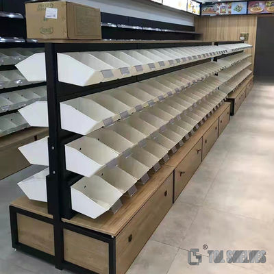 This gondola supermarket rack for metal supermarket shelf can be combined by single sided and double sided shelves and half-round gondolas.The space and load capacity for each tier are more large than common commercial shelves. Different thickness,size,layers,and colors are available for you to choose.